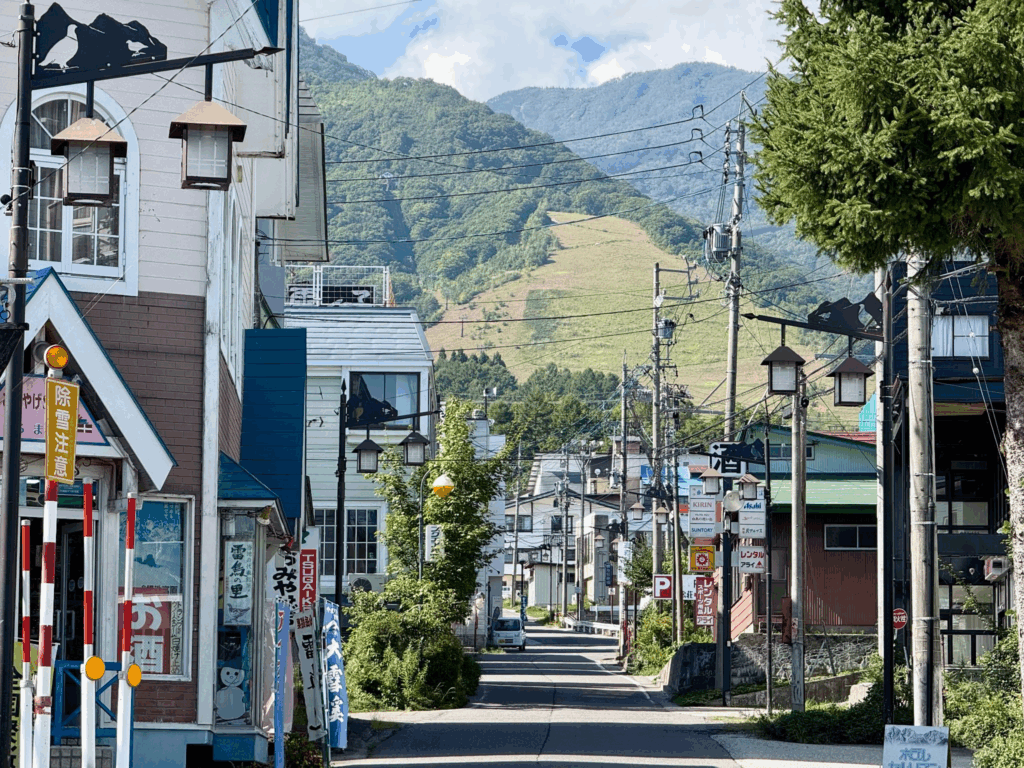 ヒルクライム序盤。ペンション街の中をスキー場に向けて進む。